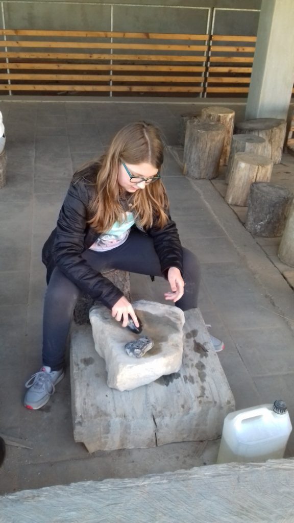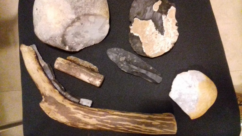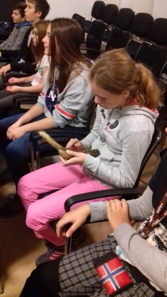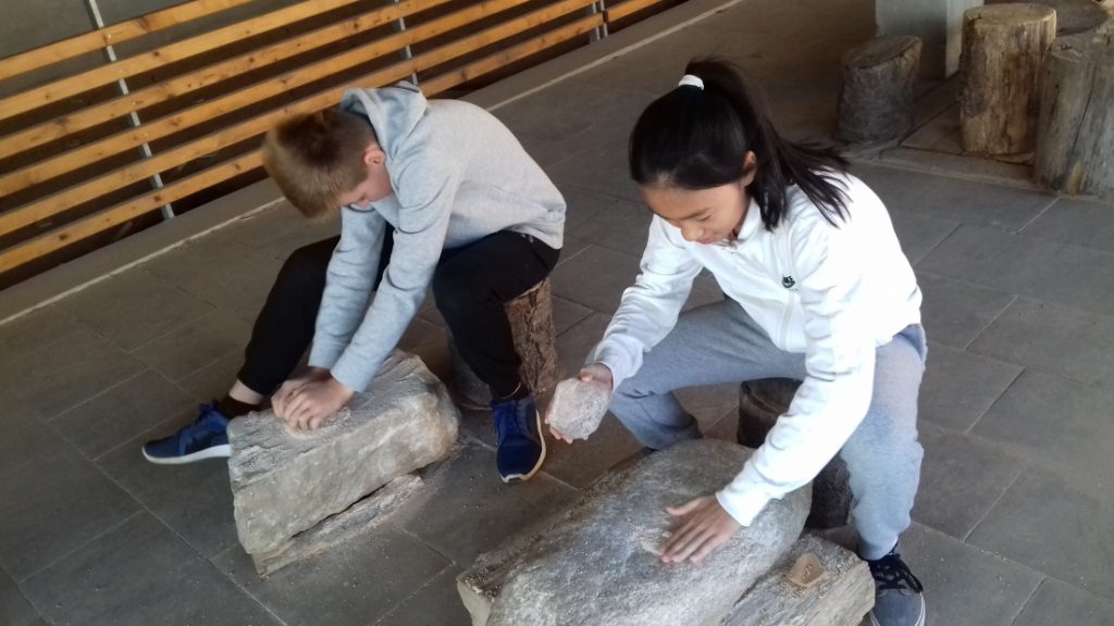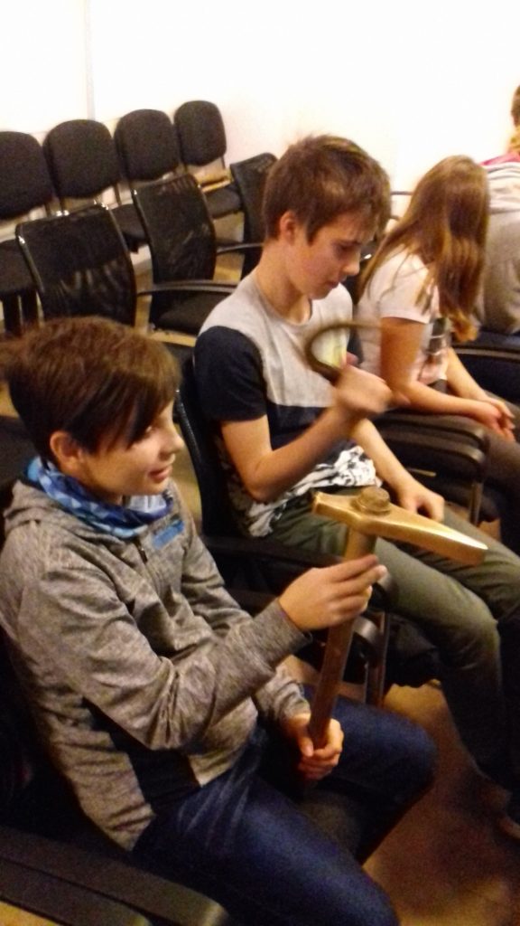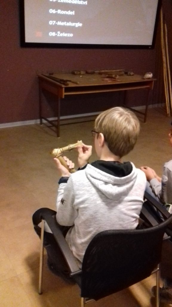 Na několika videích jsme viděli, jak lidé v pravěku opracovávali kámen a vyráběli první nástroje a zbraně, stavěli domy, vyráběli nádoby z hlíny, obdělávali pole, a kde si ukládali vypěstované obilí. Pozdější nástroje a zbraně byly vyráběny z bronzu a nakonec ze železa. Nejlepší na tom bylo, že jsme si většinu předmětů mohli osahat a pořádně si je prohlédnout.