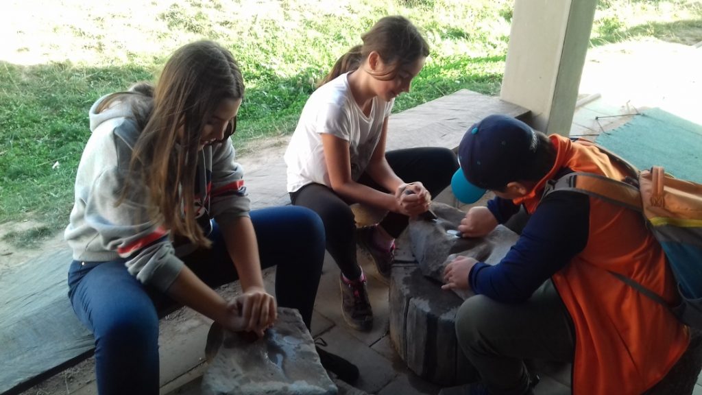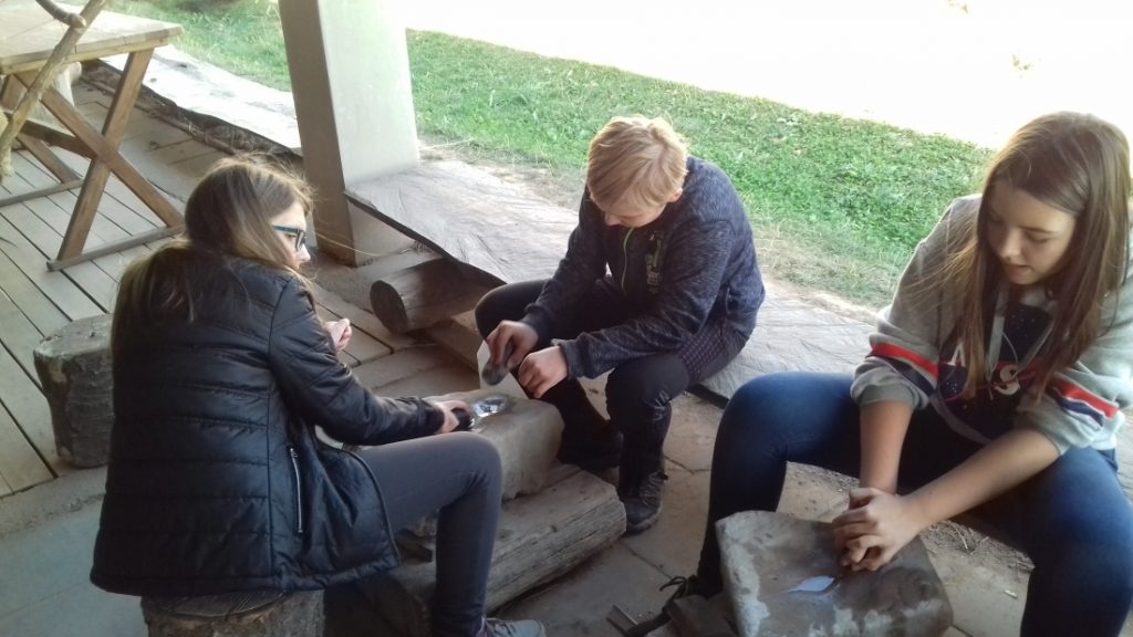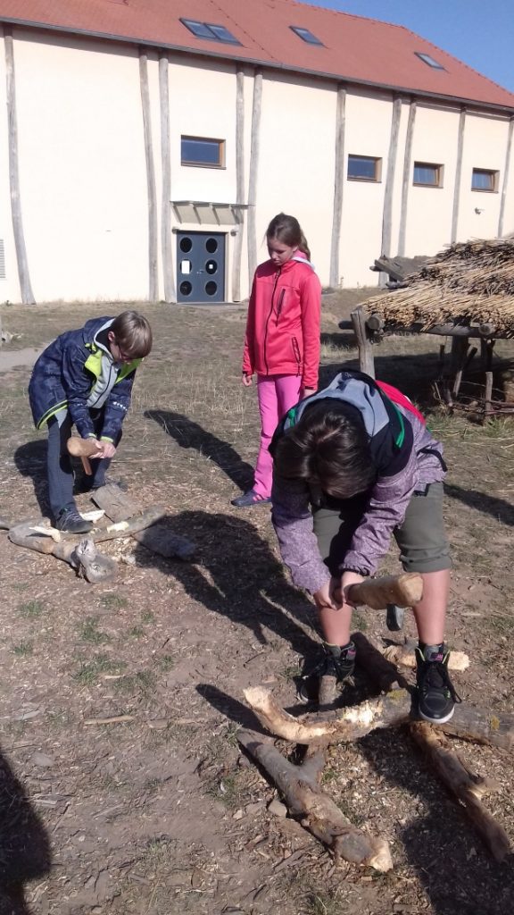 Nejvíce se nám líbily venkovní prostory. Vyzkoušeli jsme si tam několik činností. Lovem bychom se asi neuživili, to jsme si ověřili při házení oštěpem do terče. Lépe nám šlo sekání dřeva, ruční broušení kamene, mletí obilí nebo obdělávání půdy pomocí primitivních dřevěných nástrojů. Nahlédli jsme do několika typů domů, které v minulosti lidé obývali. Obdivovali jsme jejich šikovnost, co všechno dokázali postavit a vyrobit za primitivních podmínek.