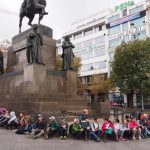Prošli jsme Hrad, kde jsme zastihli výměnu stráží, Karlův most, na kterém jsme kromě soch, pohledu na ostatní mosty, Vltavu a Národní divadlo, připomněli i o víkendu tragicky zesnulého herce Jana Třísku. Pokračovali jsme na Staroměstské náměstí kolem orloje a trasu zakončili na Václavském náměstí pod sochou našeho patrona.