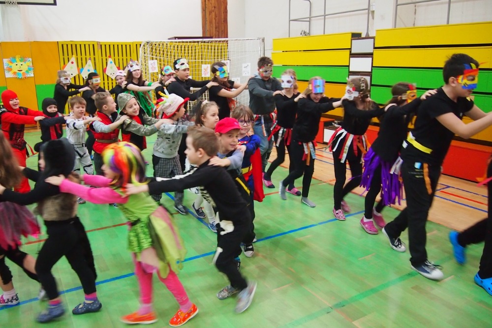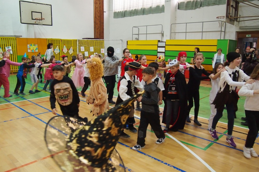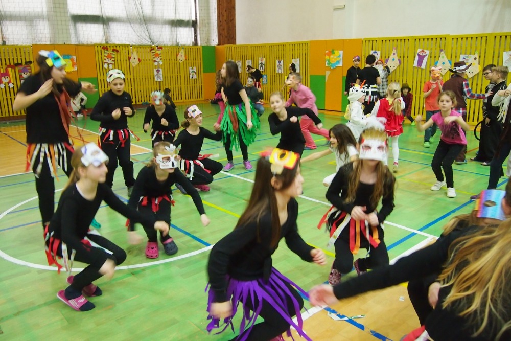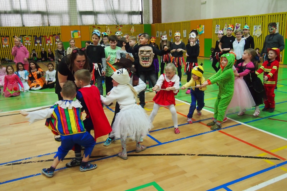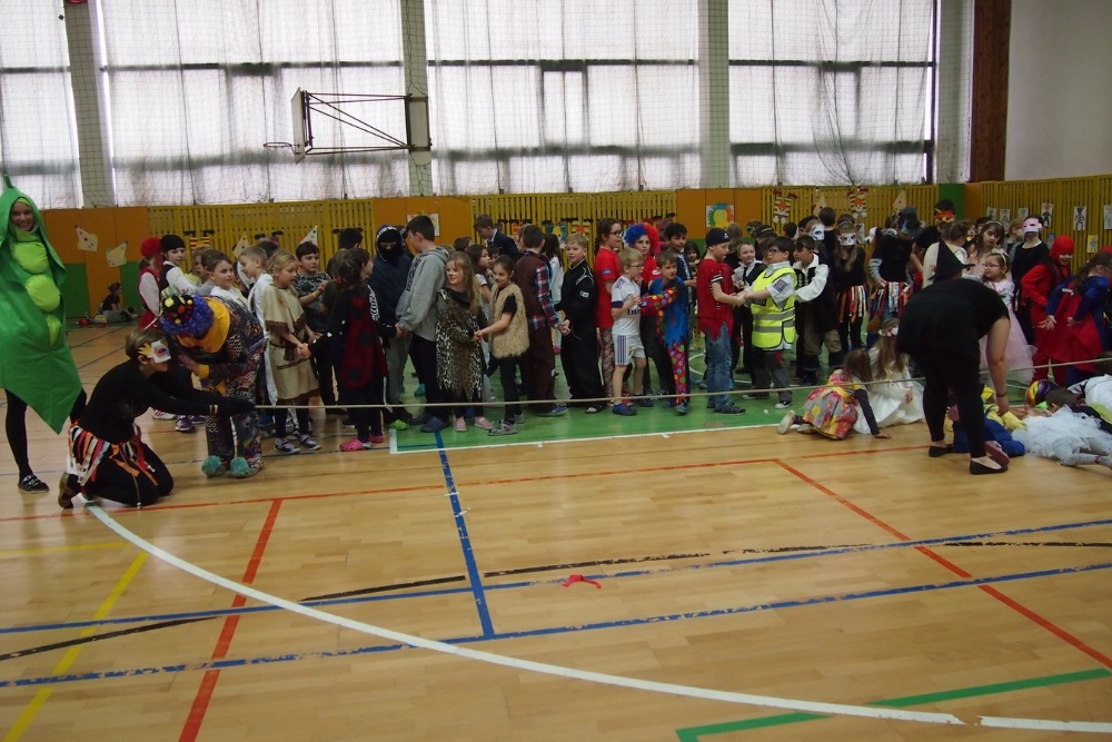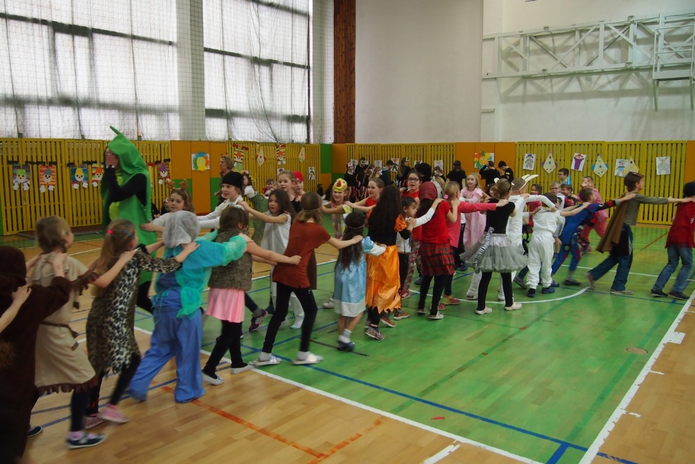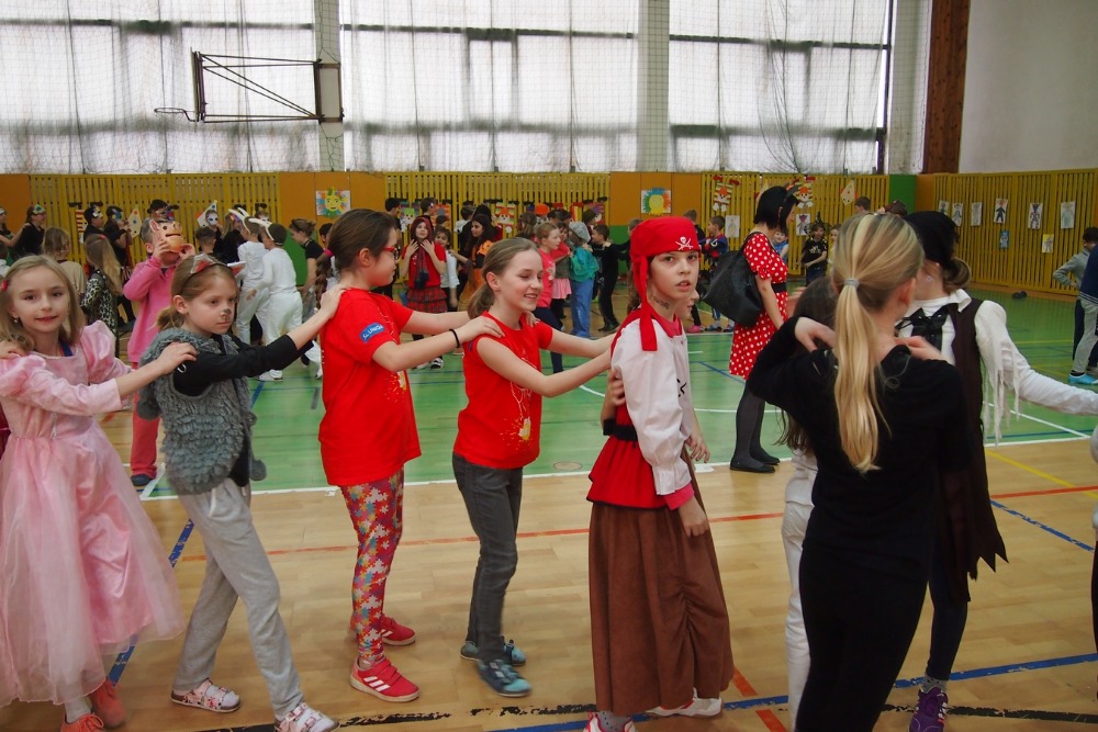 Jako každoročně uspořádal 1.stupeň v úterý 5. března masopustní rejdění pro své děti i děti obou školek. Paní učitelky s asistentkami připravily v hale známé soutěže, při kterých se děti zase krásně vyžily. Paní kuchařky pak pro nás připravily k obědu dobrotu v podobě koblížků. Škoda jen, že diskžokej pan školník neměl k dispozici kvalitní školní aparaturu. Bez mikrofonu to dnes už nejde…