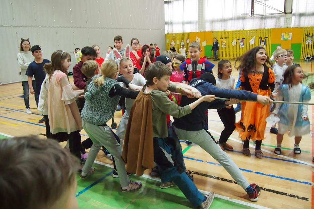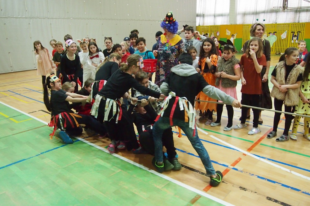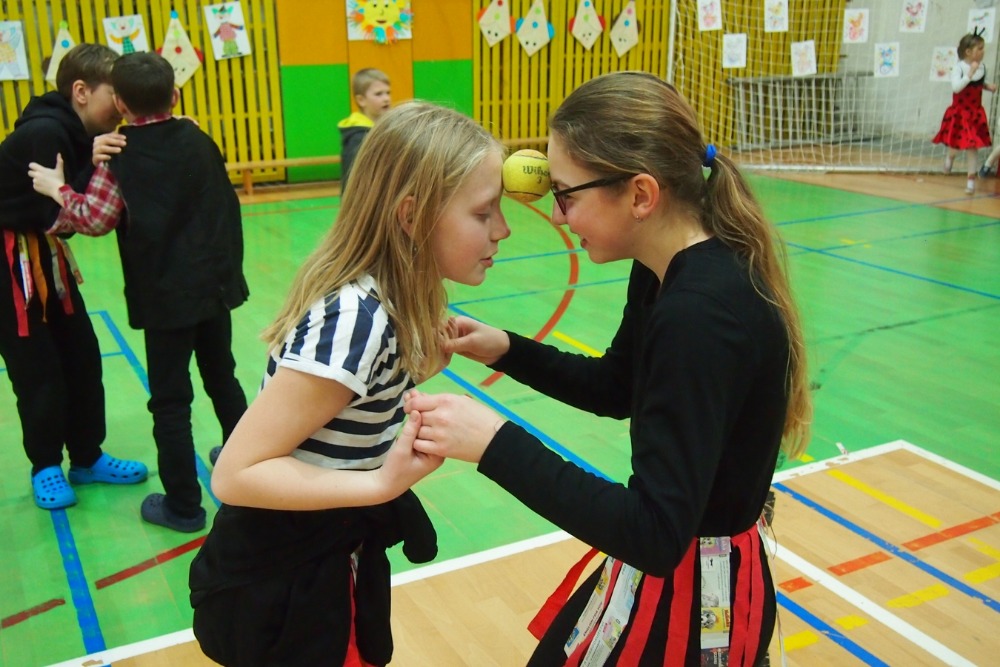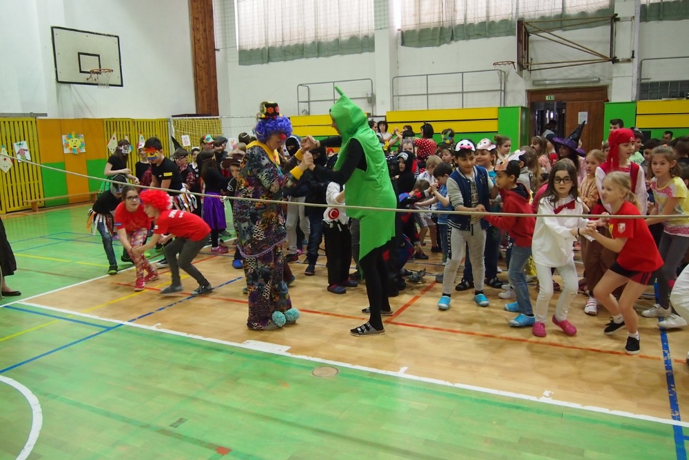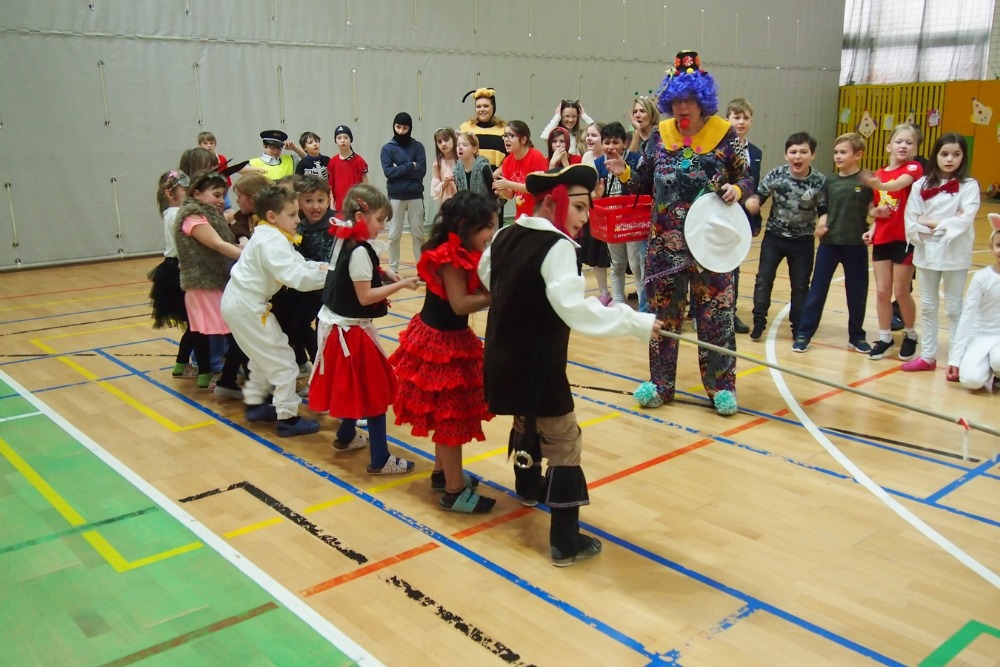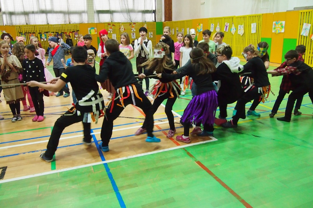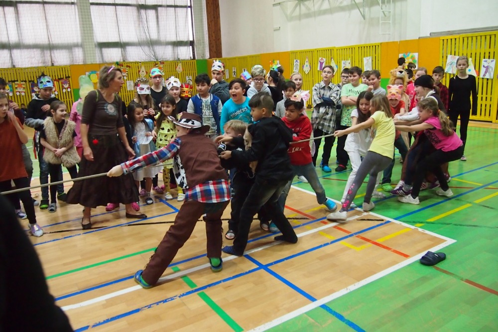 Jako každoročně uspořádal 1.stupeň v úterý 5. března masopustní rejdění pro své děti i děti obou školek. Paní učitelky s asistentkami připravily v hale známé soutěže, při kterých se děti zase krásně vyžily. Paní kuchařky pak pro nás připravily k obědu dobrotu v podobě koblížků. Škoda jen, že diskžokej pan školník neměl k dispozici kvalitní školní aparaturu. Bez mikrofonu to dnes už nejde…