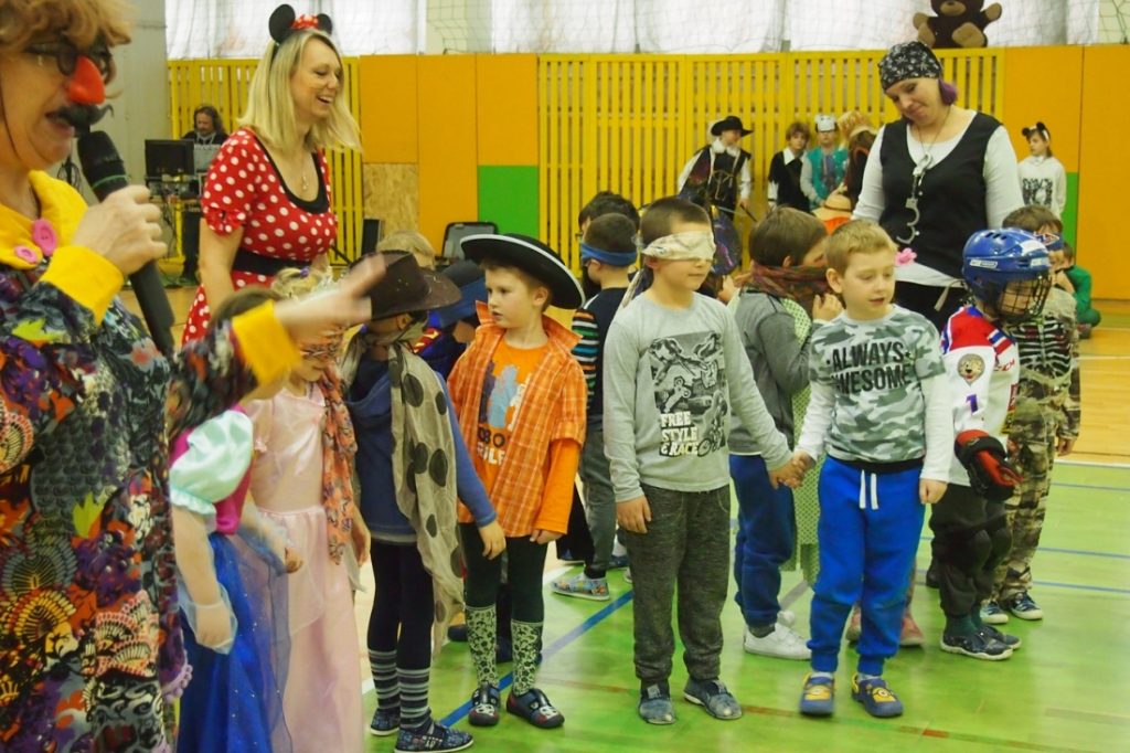 V úterý 13. února vypuklo v hale školy tradiční masopustní veselí se soutěžemi a tančením. Paní učitelky připravily opět pěkné soutěže i ceny, pan školník zahrál něco málo ze své sbírky. Přišli se pobavit i předškoláčci z naší školky. Masopustní průvod prošel školou, abychom poveselili i starší spolužáky. A nakonec nesměl chybět masopustní koblížek.