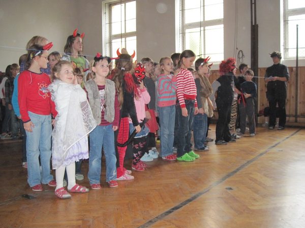 Jako každým rokem u nás ve škole chodil Mikuláš, tentokrát ve čtvrtek 3.12. Letos naše nejmenší přišli postrašit a zároveň i obdarovat žáci z 9.B. Tři čerti v podání Nikoly Stránské, Pepy Slavíčka a Tomáše Maňáska spouštěli hrůzu, napravovali zlobivé děti, a dokonce si některá zlobidla chtěli odnést. Těm hodným žáčkům dali odměnu andělé Jesika Kverková a Eliška Vrbová. A Mikuláše, který předčítal z knihy hříchů a budil respekt u našich malých spolužáků, ztvárnil Fanda Šalanda. Konec dobrý, všechno dobré, takže na konec připravil Mikuláš pro ty nejmenší minidiskotéku ve školní tělocvičně.
