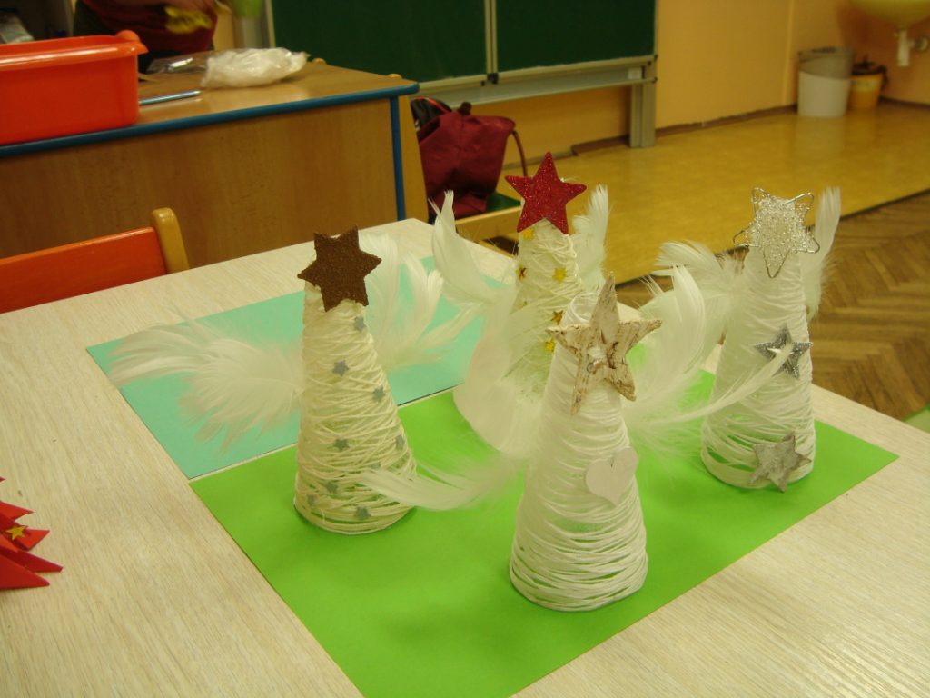 Velkou radost jsme měli ze sněhuláka, který je vystavený v chodbě školy. Museli jsme nafouknout gumové míčky, ty obalit několika vrstvami novin namočených ve škrobu a pak stačila už jen bílá barva a slepovat koule dohromady a zdobit. K adventnímu tvoření patří čertíci, Mikuláši a andílci z papíru, které jsme si nadšeně vybarvovali, stříhali a skládali. Ke stromečkům jsme si také rozsvítili vánoční svíčky a zpívali koledy. Ta naše nejoblíbenější koleda se jmenuje Mějme se rádi, kterou nacvičily děti ze sboru s paní učitelkou Šilhábelovou.